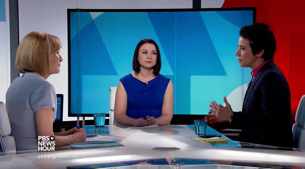 A delivery service employee named Sharon Simmons attended a press conference hosted by American leader Donald Trump in the United States on April 13, as broadcast live by C-SPAN.
